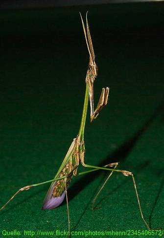 heute stelle ich Euch Hierodula vitrea vor. In vielen Ländern Asiens werden die Hierodula-Arten als Riesengottesanbeterinnen ob ihrer Größe bezeichnet. Diese Art lebt in Indonesien, auf Java, auf den Philippinen und den Sunda-Inseln. Das Weibchen wird bis zu 10 cm lang, das Männchen erreicht eine Länge von bis zu 7 cm. Sie sind sehr robust gebaut und meist grasgrün. Die verwandte Art Hierodula membranacaea wird hierzulande gern in Terrarien gehalten.