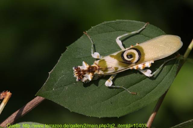 heute stelle ich Euch eine neue Mantiden-Art vor, die man allgemein auch unter dem Trivialname Einhornmantis kennt. Es handelt sich um Zoolea lopiceps. Einen deutschen Namen hat diese Art wie viele ihrer Verwandten nicht. Es handelt sich hierbei um eine sehr schlanke und langgezogene Art, die nur im Norden Südamerikas (Venezuela, Kolumbien, Franz.Guyana, Brasilien) zu finden ist. Der deutsche Trivialname kommt von der hornartigen Verlängerung (siehe Bild 3) auf dem Kopf. Die Tiere werden max. 8-10 cm groß und ernähren sich relativ wahllos von Allem, was sie überwältigen können.