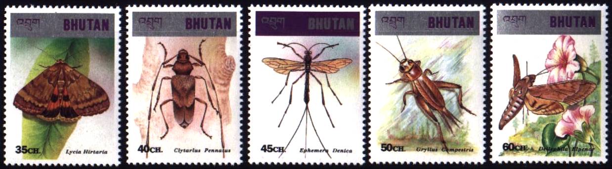 Schönen Dank für die gezeigten Marken. Es handelt sich um den Block 21 und den Flugpost-Block 22 vom 10.April 1969 aus Bhutan. Die Mi.-Nr 273 mit der Mantis patella hatte ich ja schon in einem der letzten Posts gezeigt.