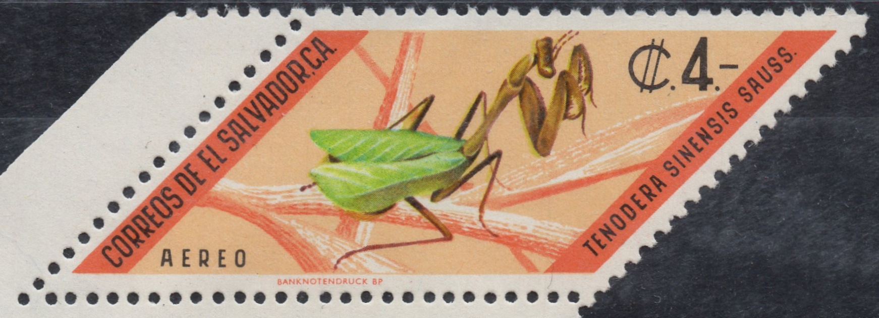 Trinidad and Tobago ist ein Inselstaat der Kleinen Antillen und liegt zwischen der Karibik und dem Atlantischen Ozean, nordöstlich von Venezuela. Eine der großen Leidenschaften der dort lebenden Menschen ist der Carneval. Die farbenprächtigen Umzüge und Feierlichkeiten brauchen sich hinter denen von Rio de Janero nicht zu verstecken. Carneval bedeutet aber auch immer, dass sich Menschen ausgefallene Kostüme einfallen lassen und da werden auch die ein oder anderen Tiere nachgebildet. T&T bringt alle Jahre das Thema auch auf Briefmarken, so auch im Jahre 1978. Im Scott katalogisiert unter den Nr: 296 - 301 (falls einer die Mi.-Nr. hat, möge er/sie sie mir bitte mitteilen :)) werden uns sehr farbenprächtige Kostüme gezeigt. Dabei ist es Sc.-Nr.: 299, die eine Gottesanbeterin zeigt. Schön wäre es, diese Verkleidung mal in echt betrachten zu dürfen...