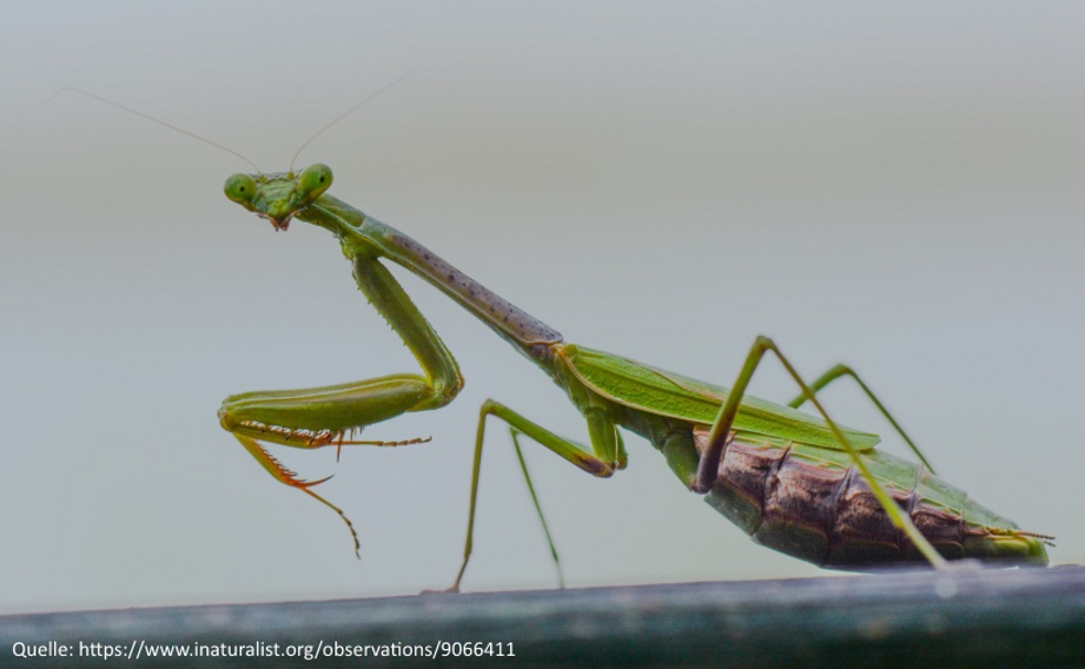 Apropos, im letzten Jahr habe ich mit einem Freund gemeinsam den Erstnachweis für die Mantis religiosa für Potsdam geführt (siehe unten). Die Art ist also auch in Brandenburg im Vormarsch.