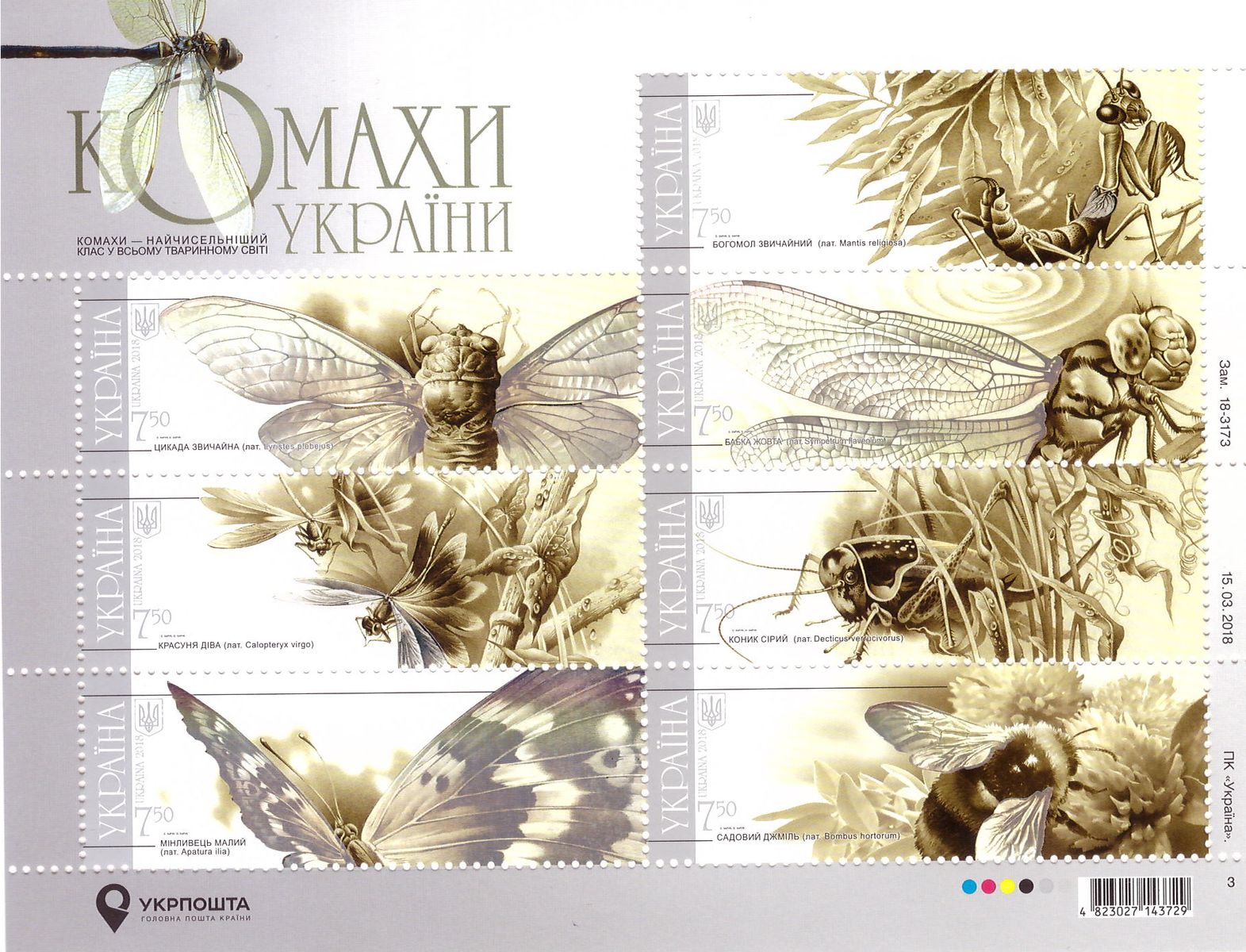 Im Jahre 2018 wurde von der Ukraine am 06.September ein Block mit 7 Marken unter dem Namen Insekten der Ukraine verausgabt. Unter anderen war im Block eine Marke der schon sehr häufig gezeigten Europäischen Gottesanbeterin (Mantis religiosa) enthalten.