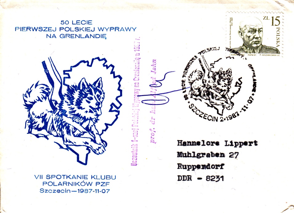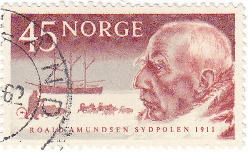 Heute ist wohl der 100. Jahrestag der Bezwingung des Südpoles durch Amundsen. Gestern lief diesbezüglich im ZDF darüber eine sehr schöne Dokumentation. Da haben sich die Macher des Beleges Nr. 323 zum 75. Jahrestag wohl geirrt. Zu Amundsen Ehren 2 Briefmarken mit Schlittenhunde und eine Marke mit Nansen.