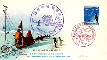 Anbei die zweite Marke aus dem norwegischen Amundsen-Satz von 1961 und eine Karte, die mir ein guter Freund und Polarforscher direkt vom Aufbau der deutschen Neumayer-Station III geschickt hat.