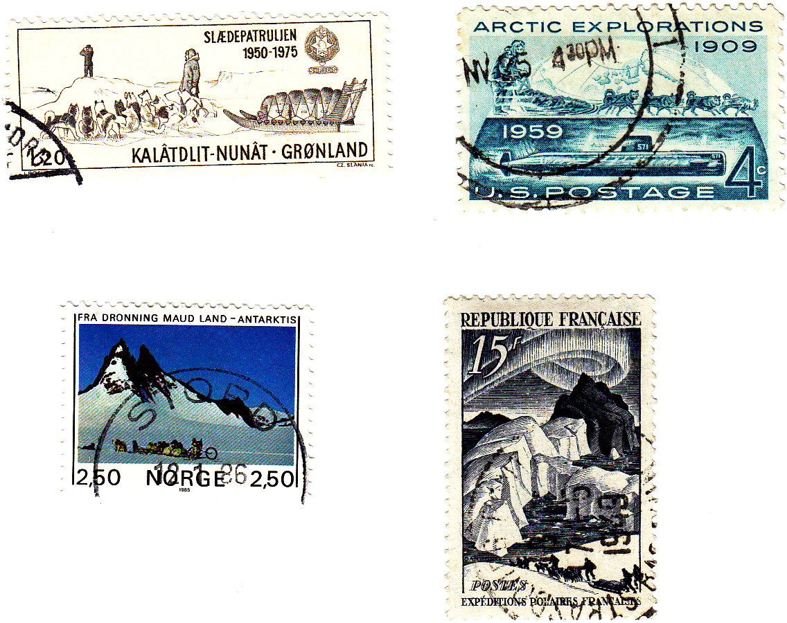 Heute ist wohl der 100. Jahrestag der Bezwingung des Südpoles durch Amundsen. Gestern lief diesbezüglich im ZDF darüber eine sehr schöne Dokumentation. Da haben sich die Macher des Beleges Nr. 323 zum 75. Jahrestag wohl geirrt. Zu Amundsen Ehren 2 Briefmarken mit Schlittenhunde und eine Marke mit Nansen.