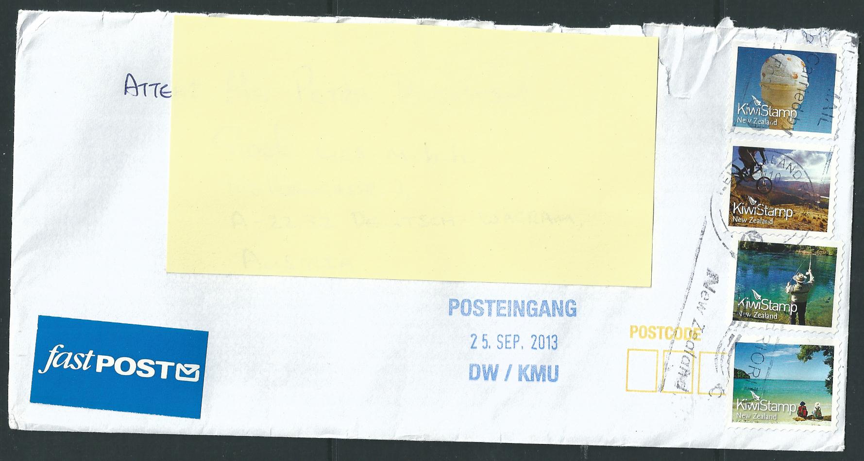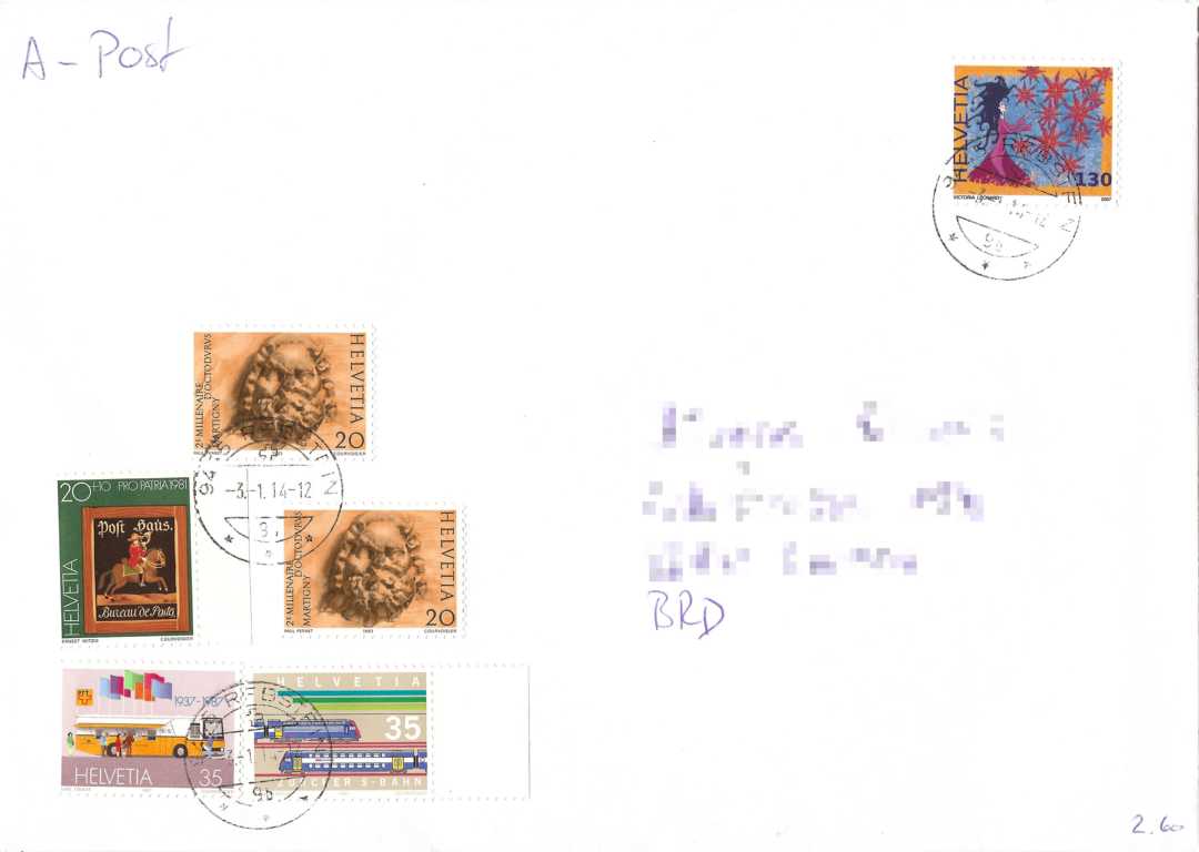 Diesmal ganz manierlich gestempelt und auch der Aufkleber mal nicht auf den Marken plaziert