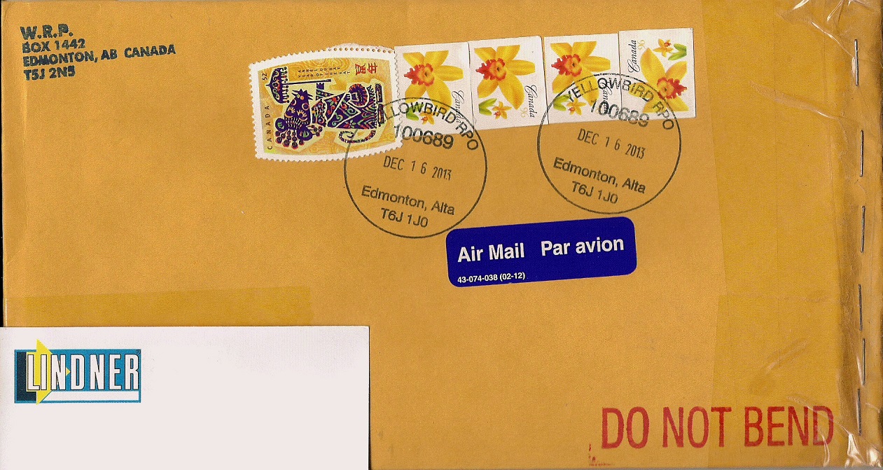 als Neufundlandsammler bekommt man naturgemäß häufiger Post aus Nordamerika. Hier ein netter Brief mit Ratte (Chin. Tierkreiszeichen) und Narzissen aus Yellowbird/Edmonton