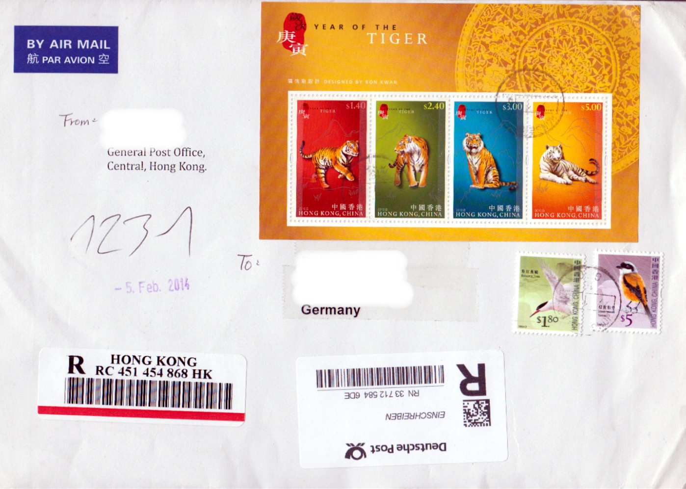 Gleich zwei Briefe aus Hongkong sind heute bei mir eingetrudelt: