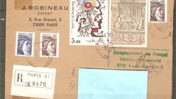 Danke. Ich hatte mich gewundert wegen des R-Zettels. Ich dachte, die französische Post hätte schon früher Barcode-R-Labels eingeführt, aber das hätte dann mit dem deutschen Label wieder nicht gepasst.