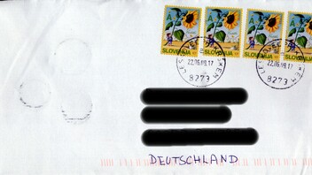 Bei diesem Brief aus Slowenien wird man gleich an den nahenden Herbst erinnert: Sonnenblumen im Viererpack.