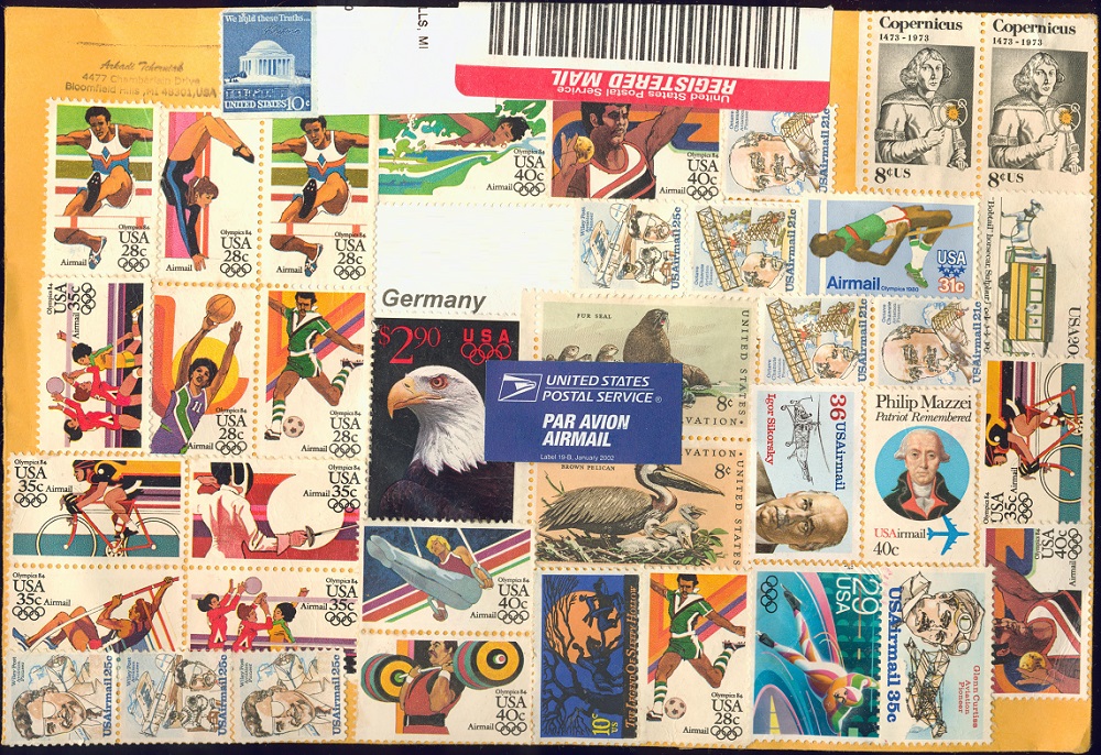 Die Amis kleben des öfteren mal mehrere Marken darauf wie bei diesem Ganzsachenumschlag ...