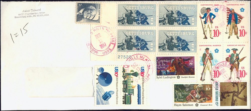 Die Amis kleben des öfteren mal mehrere Marken darauf wie bei diesem Ganzsachenumschlag ...