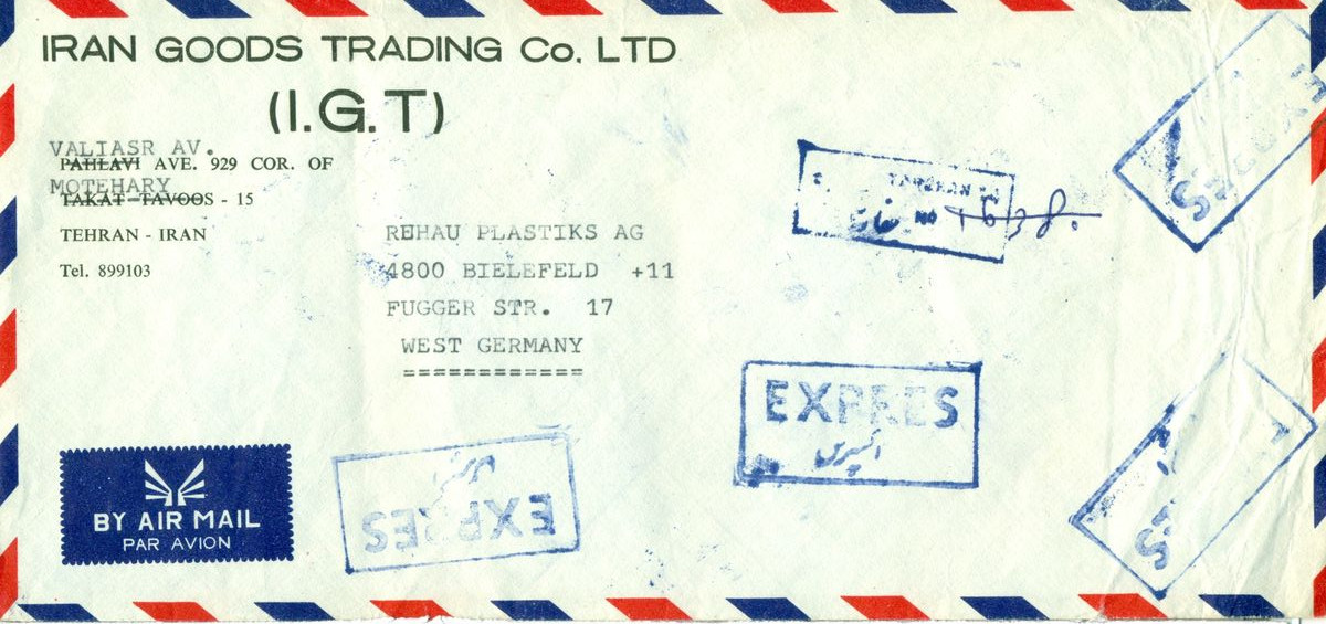Mehr wild als schön, aber trotzdem oder gerade deshalb. Bemerkenswert: Aus dem Iran nach Bielefeld. Jetzt müßte man nur noch die Stempel lesen können...und das Aufgabedatum.