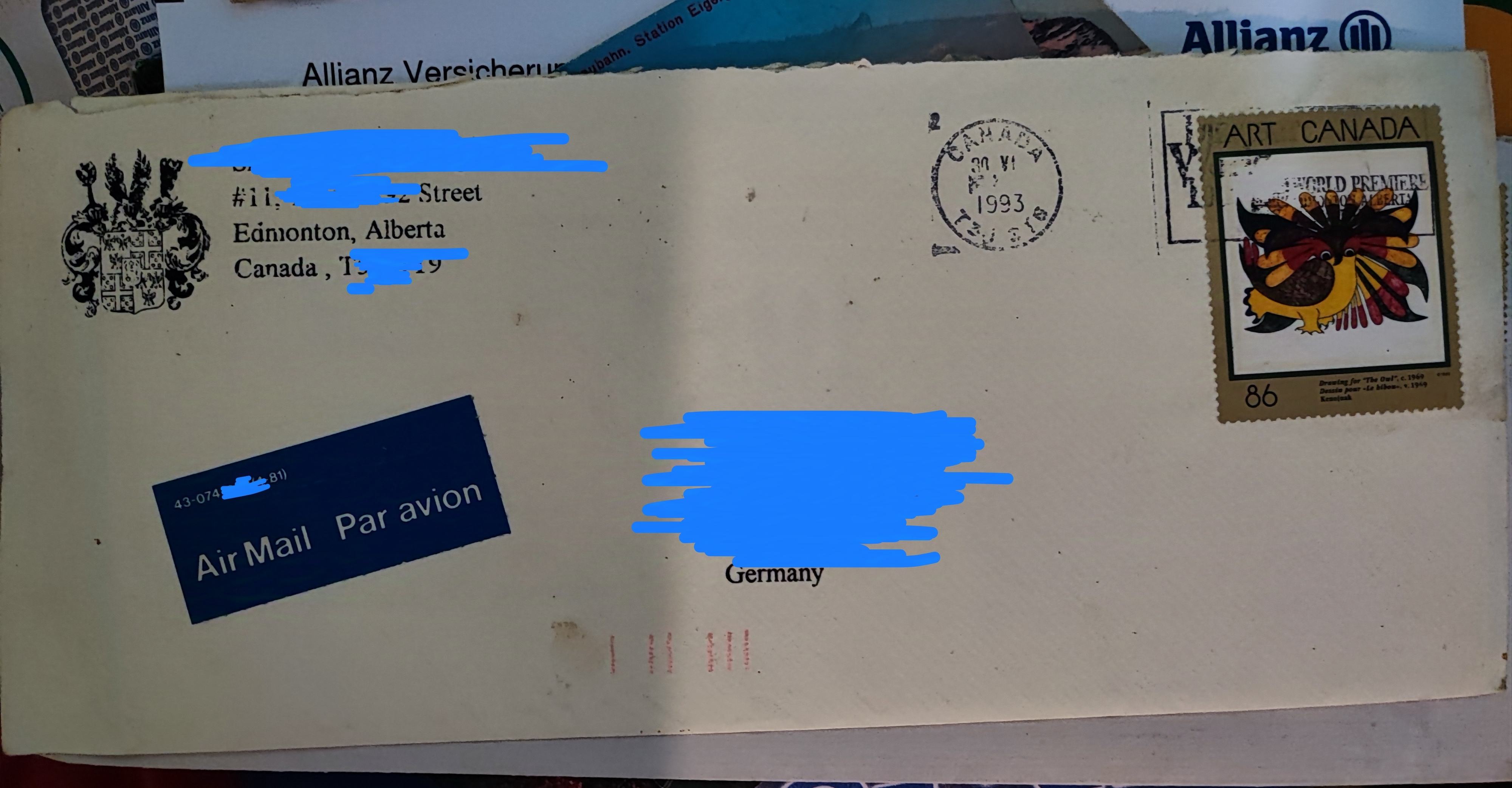 wieder mal ein Händlerbrief aus Canada mit einer wilden Mischfrankatur älterer canadischer Marken. Darunter acht Walrus-Stamps aus dem Jahr 1989. Zudem ein "kleiner" Verwandter des Tyrannosaurus, der Albertosaurus der "nur" etwa 9m lang wurde.