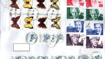 Wie von dem Auktionshaus gewohnt ist der Umschlag mit einem bunten Sammelsurium älterer schwedischer Marken frankiert. Insgesamt 110 Schwedenkronen. Da die Schwedenkrone schwächer ist als die Dänenkrone ist der Versand günstiger als früher mit der Dänischen Post. Der neue private Dienstleister biete übrigens keine Auslandsbriefe an. Kein Wunder, dass man in der Provinz Post nach Deutschland als smapakke (Päckchen) verschickt (verschicken muss