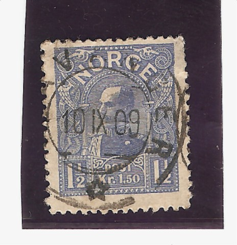 Norwegen, das ist richtig die Michel-Nr. 68 von 1907, auch wegen dem Datum 10.9.09, die Mi.-Nrn. 73 und 90 sind beide von 1910. Den aktuellen Preis muss Dir noch jemand mit aktuellem Katalog sagen.