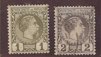 Monako Mi.-Nr. 1 und 2 sind richtig, aktuelle Preise wie immer von jemand anderem mit neuem Katalog.