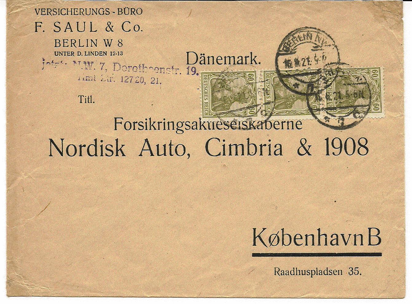 ich starte mal einen neuen Thema: Belege Deutschland - Dänemark ab der Pfennige-Ausgabe bis Ende der Inflation, also 1875 bis 1923.