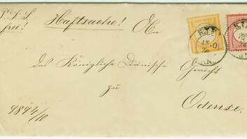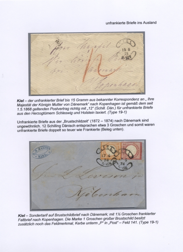 Marken entwertet mit dem Steggitterstempel Hanau 2b vom 23.11.23. Rückseitig Kopenhagener Ankunftstempel vom 25.11.23