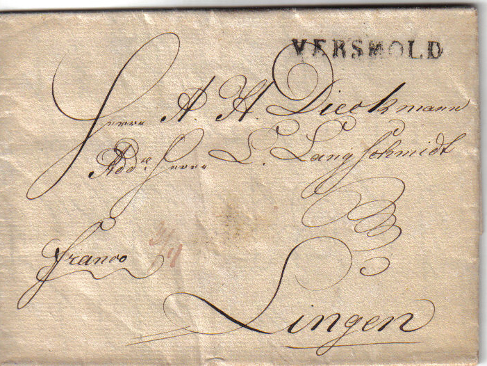 sehr schöner Schnörkelbrief mit Inhalt von Versmold nach Lingen