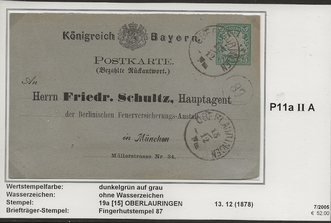 Noch die genaue Beschreibunbg der bayerischen Ganzsachen-Postkarte: