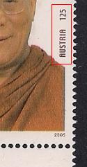 Die Nominalangabe meines Stückes, Dalai-Lama ohne Aufdruck Frankaturungültig befindet sich rechts oberhalb der Schulter des Dalai-Lama und trägt die Inschrift "AUSTRIA 125"