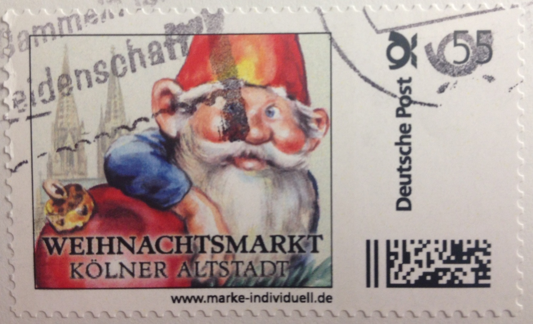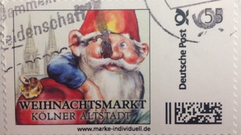 Weihnachtsmarkt Kölner Altstadt 55 Gartenzwerg an Christbaumkugel Kölner Dom