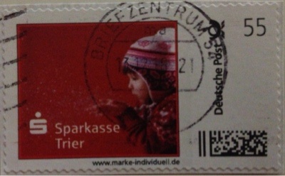 Bisher war es recht enfach: Bei den marken Individuell gab es nur 2 Zähnungsvarianten: die von der Rolle und die vom Bogen und aus Portocards: Beide hatten 31x18 komplette Zähnungslöcher und unterschieden sich nur in den unterschiedlichen Art der Zähnung, zum einen wellenförmig (aus der Rolle) und in der normalen Form (aus Bögen und PC). Doch jetzt liegt eine Marke Individuell aus einer Portocard vor, die eine andere Zähnung aufweist. Die Zähne sind merklich breiter, so dass die Marke nur 22x13 komplette Zähnungslöcher aufweist. Vermutlich ist die gesamte Auflage in dieser Zähnung gedruckt worden. Ein Grund ist mir bisher nicht bekannt. Es handelt sich hier um die Marke mit dem verschneiten Holzhäuschen und den beiden Schneemännern mit bunten Schals und Mützen. Das früheste Verwendungsdatum, dass mir bekannt ist, ist der 07.12.12. Zur Zeit ist die Marke zusammen mit 2 anderen gestempelten Marken übrigens bei ebay zu finden. Die Marke könnt ihr noch einfacher auch hier finden. Geht einfach ein paar Einträge weiter zurück - dort stellt "Drehog" die Marke und die PC der Telekom vor und zählt mal die Zähnungslöcher.
