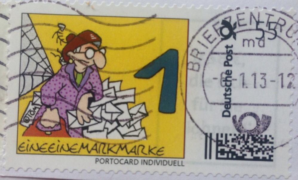 EINEMARKMARKE, Abbildung: Alte Frau mit vielen Briefen, 1, Spinnennetz 55