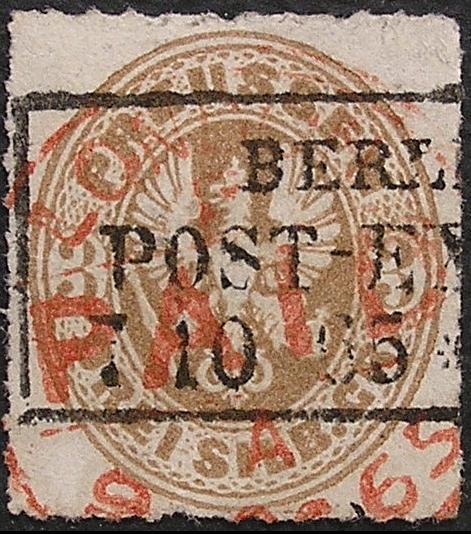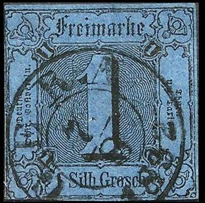 Die Marke ist eine Puppe, weil sie absolut voll- bis breitrandig geschnitten ist (setze mal eine Brille auf), völlig ohne Fehler mit absolut zentrischem, klaren Stempel. Von dieser Marke gibt es in dieser Qualität mit diesem Ortstempel keine drei Stück auf der Welt.