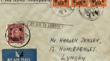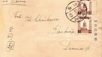 Es handelt sich um eine Postkarte aus Huanjen (möglicherweise heutige Schreibweise: Huanren) in Madschukuo nach Glostrup in Dänemark aus dem Jahr 1934.