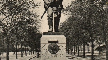 Das aufgeklebte Foto zeigt laut Kartentext ein koreanisches Begräbnis.