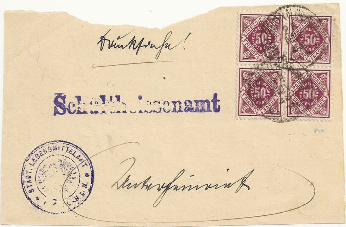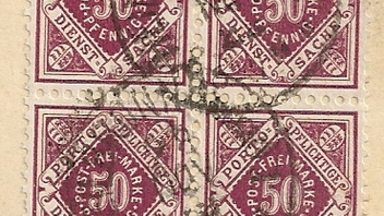 Hier ein 4-Block von Württemberg Dienstmarke 50 Pf auf