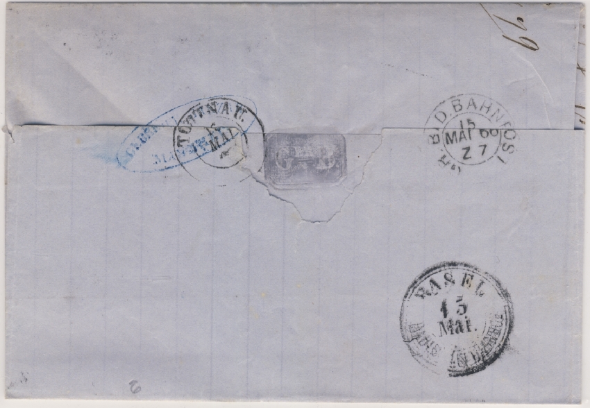 1. Fernbrief von Mannheim 1866 mit bad. Bahnpost nach Todtnau.
