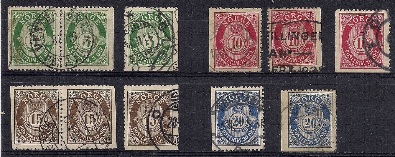 Mir fehlen hier etliche Untertypen nach Norgeskatalog, insbesondere die Marken mit dem stehenden Wasserzeichen.