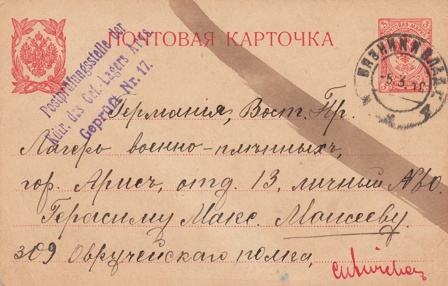 In der Auslandsbriefprüfstelle Berlin wurden auch Sendungen von deutschen Kriegsgefangenen in die Heimat untersucht, was dieser Beleg dokumentiert.