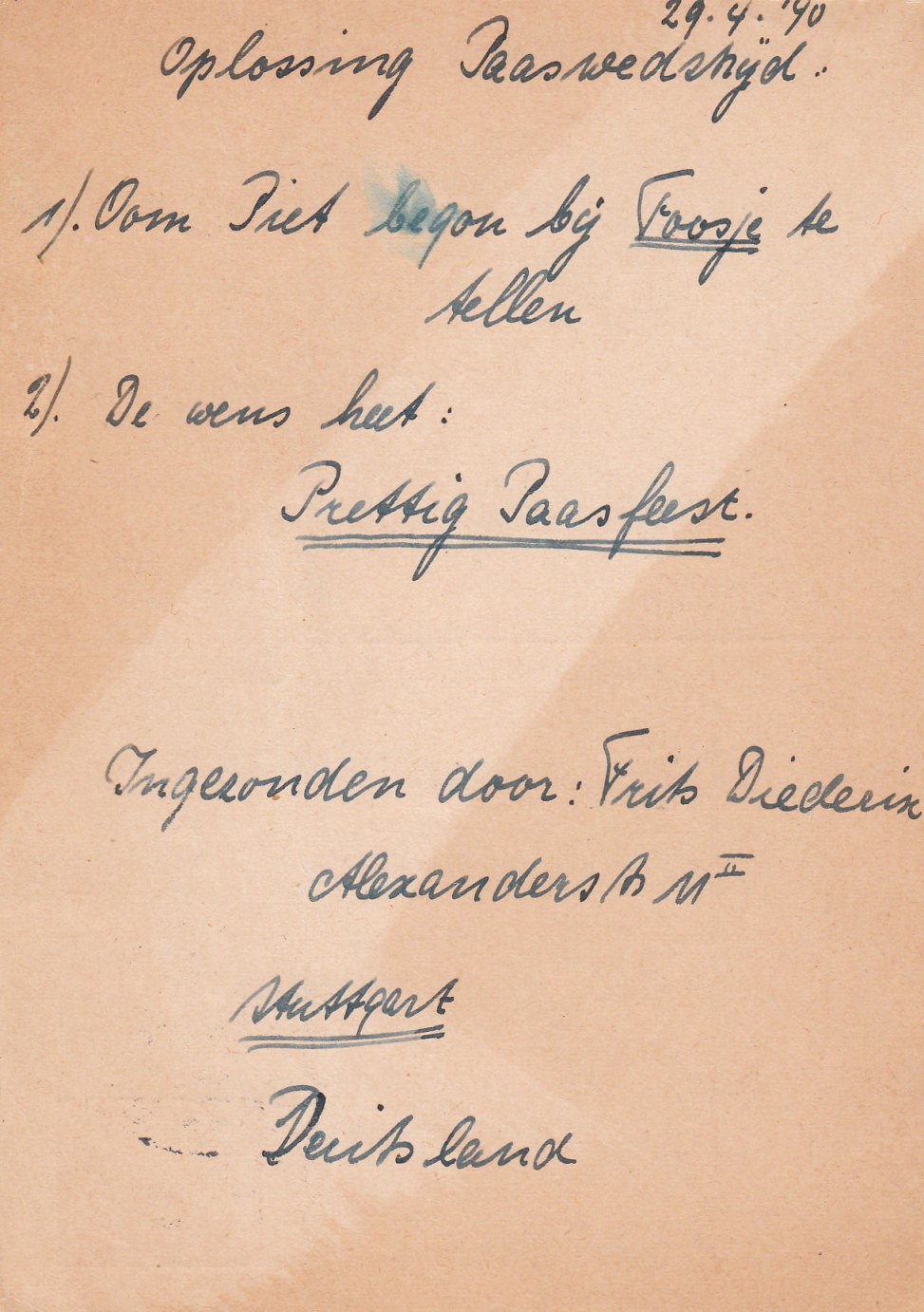 Die Prüfung auf Geheimschrift (chemische Prüfung) zeigt sich bei diesem Brief