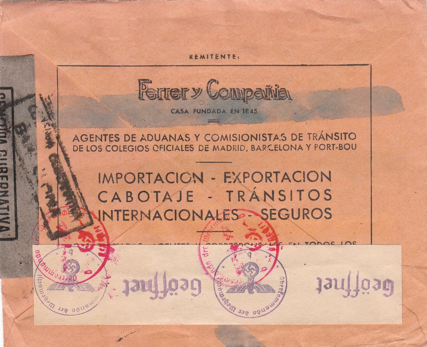 die unten gezeigte Karte vom 2. 4. 1943 aus Madrid nach Zürich durchlief die