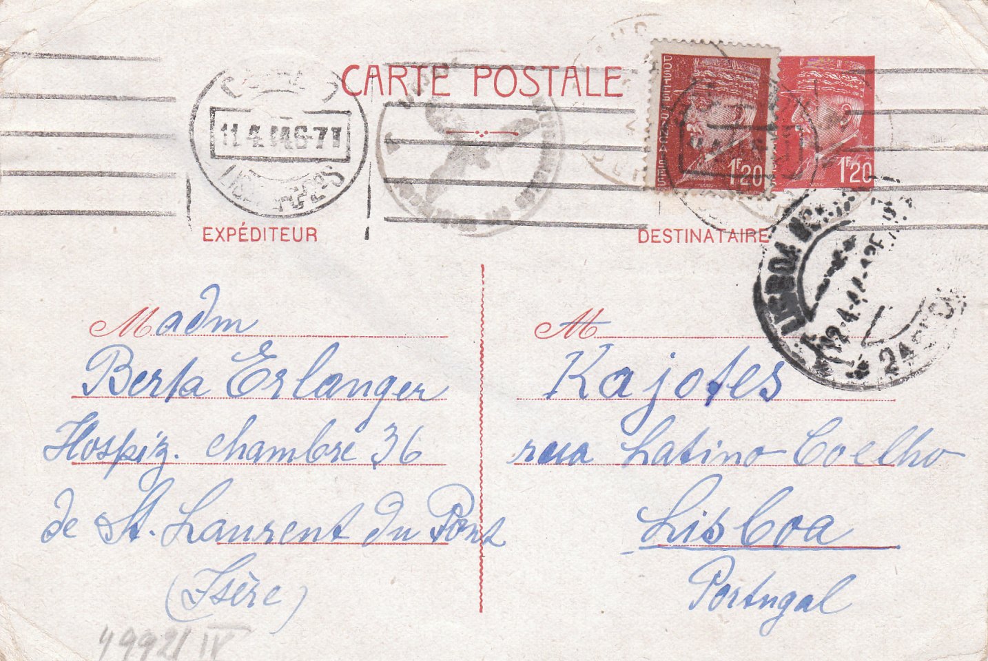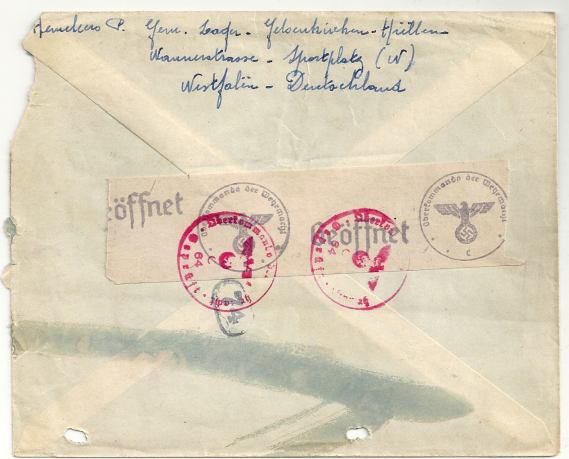 Postkarte mit Zusatzfrankatur aus Ungarn mit Tagesstempel 13.02.1941 entwertet, gelaufen über die ABP Wien, wo ein Maschinenprüfstempel in rot, Landsmann GPM1.2, mit vier gleich langen Linien sowie Schrift in Antiqua abgeschlagen wurde.