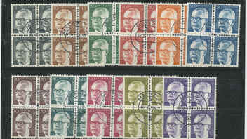 Also, die HAN sind wirklich sehr gut bezahlt worden, die gehen normalerweise billiger weg. Das Heuss-Zwischensteg-Stück ist vom Oberrand des Heftchenbogens, das gibt immer guten Aufschlag, also nichts ungewöhnliches. Und die Grossen Bauten 30 Pf im 4-er vom Oberrand mit sauberem Ortsstempel für 4 € kann man auch so stehen lassen. ;)