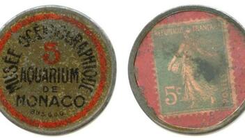 Und Kapselgeld aus Eisen von Monako, vom Ozeanographischen Museum und Aquarium: