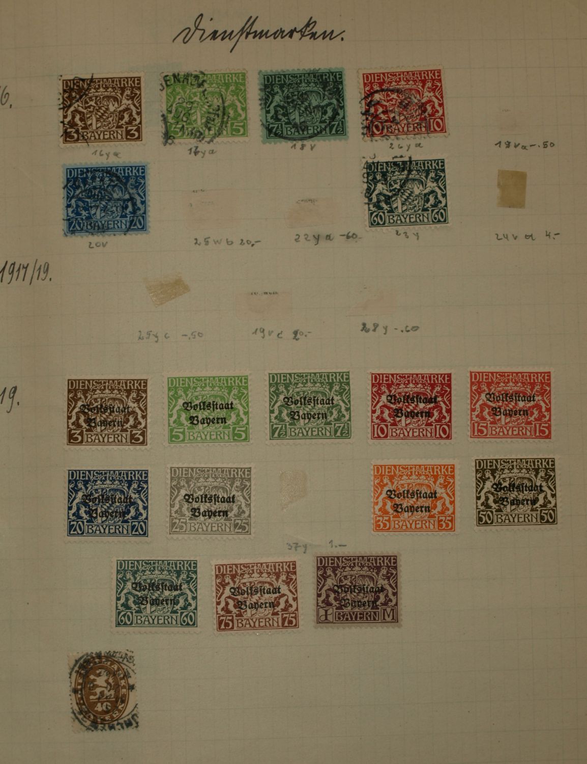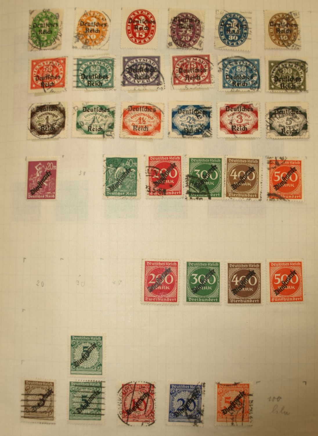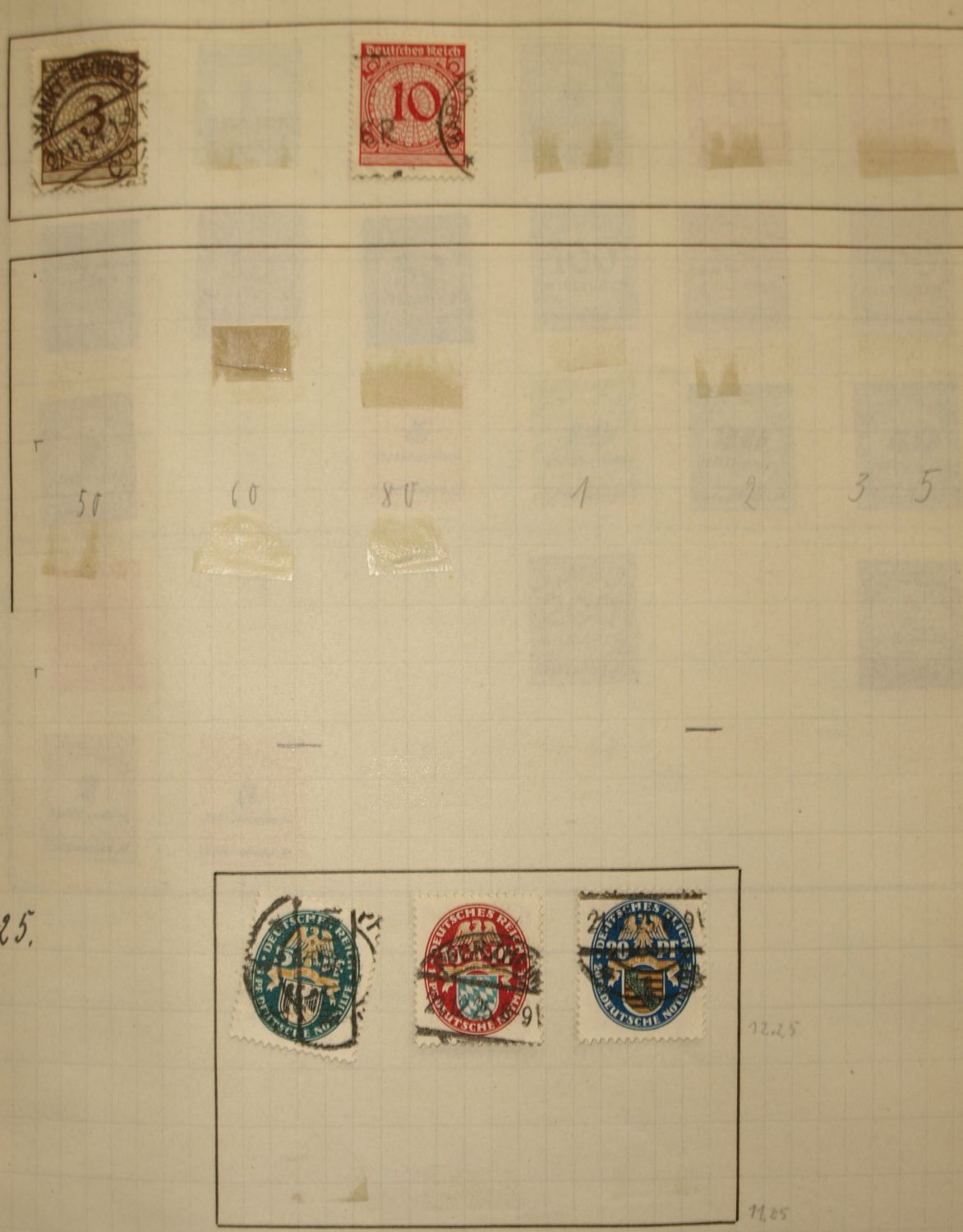 interessant, oder von Wert ist nur der Wagner und Stände Satz. Sind die Marken ganz aufgeklebt, oder habe Sie eine Falz ? Der Rest ist Massenware, evtl. ist die gestempelte Briefttauben Marke noch von Wert.