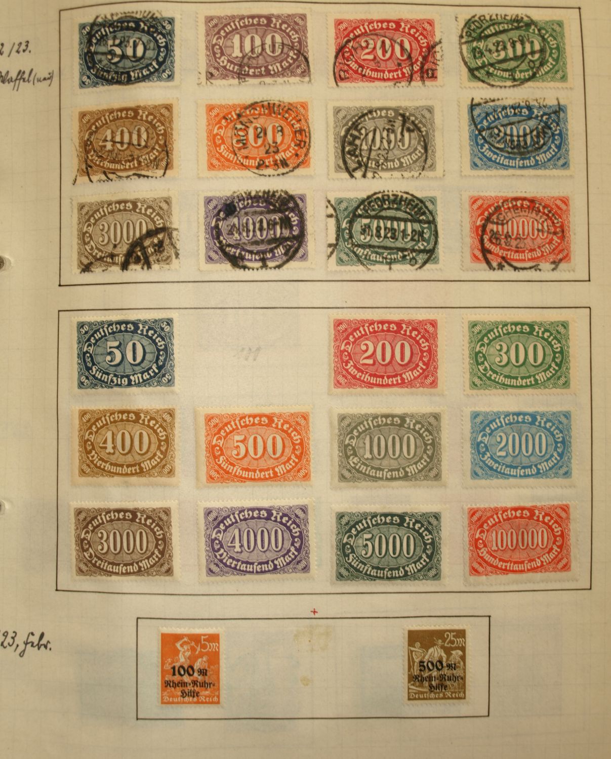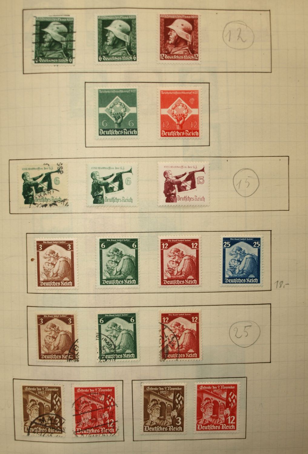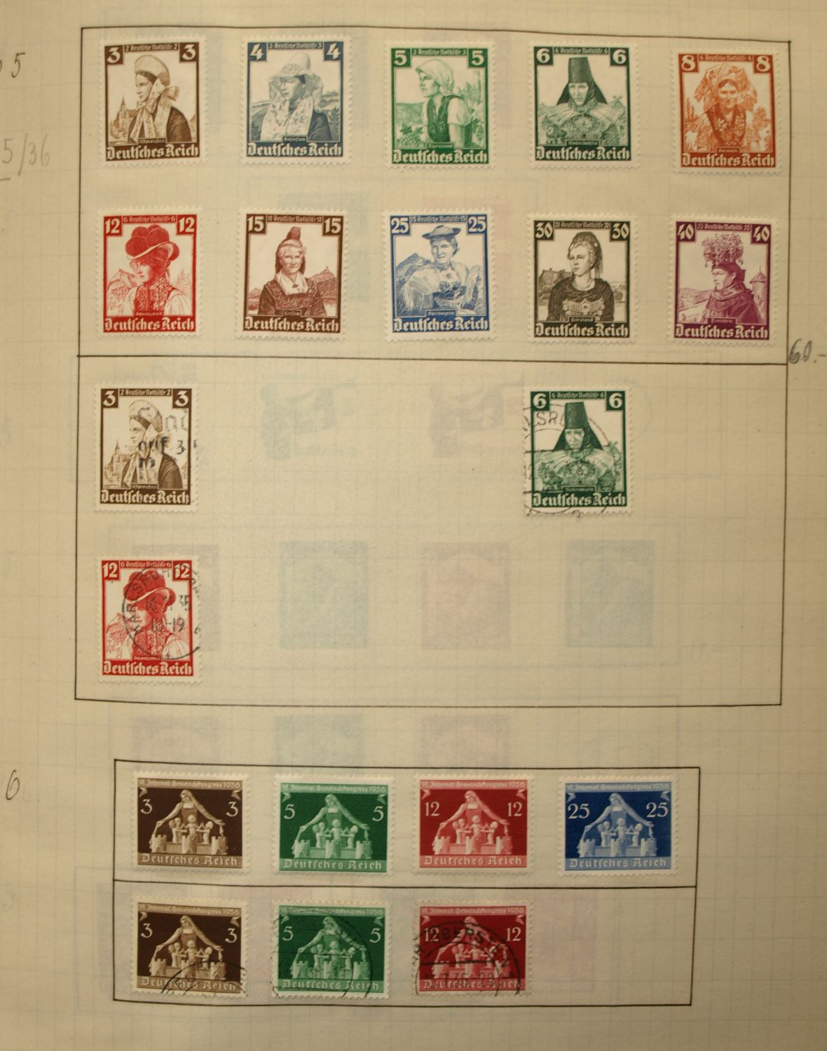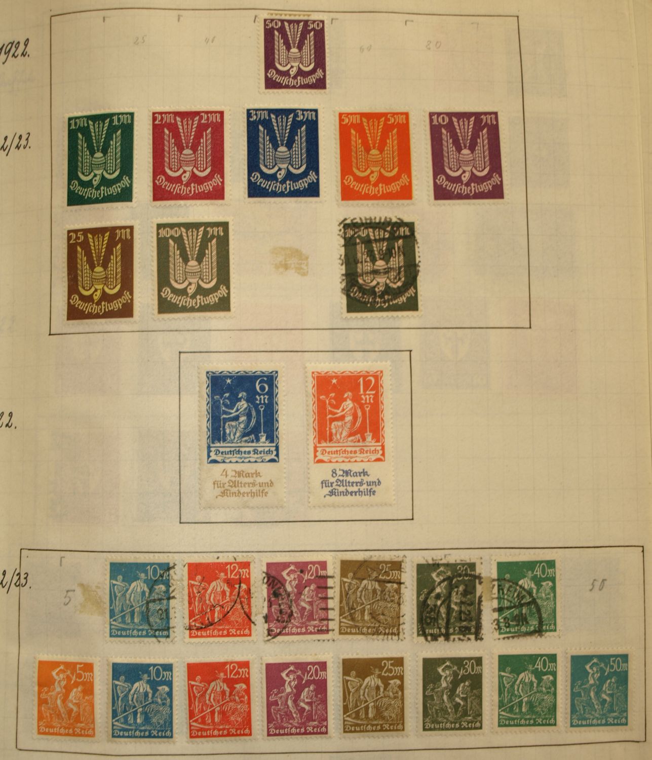 interessant, oder von Wert ist nur der Wagner und Stände Satz. Sind die Marken ganz aufgeklebt, oder habe Sie eine Falz ? Der Rest ist Massenware, evtl. ist die gestempelte Briefttauben Marke noch von Wert.