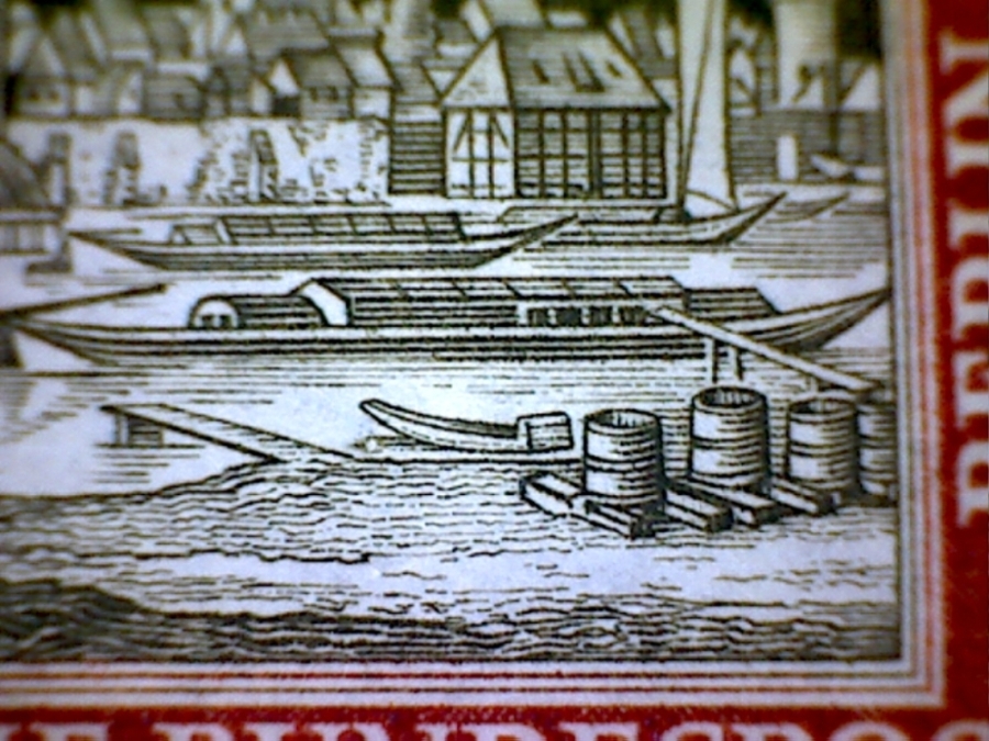 Kann mir jemand bestätigen, ob das der Plattenfehler Berlin 150 II "Ball" (weißer Fleck im Bootsschatten) lt. Michel Spezial ist ?