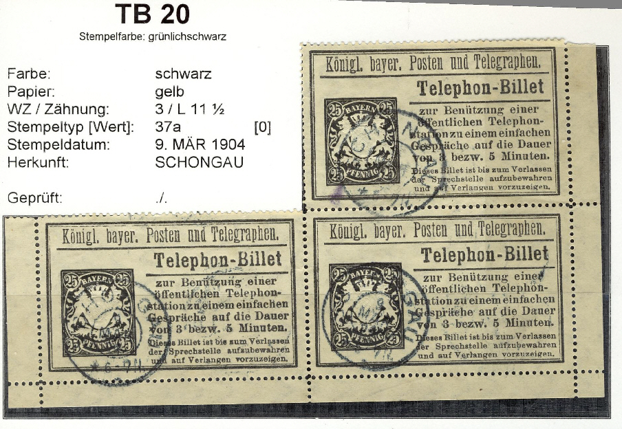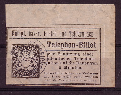 Anbei ein 10 Pfg. Telephon-Billet, verwendet am 12. April 1904 in Urfeld am Walchensee. Urfeld liegt an der alten Poststraße von München über Mittenwald nach Innsbruck. (siehe Karte - ex PGB 1940I)