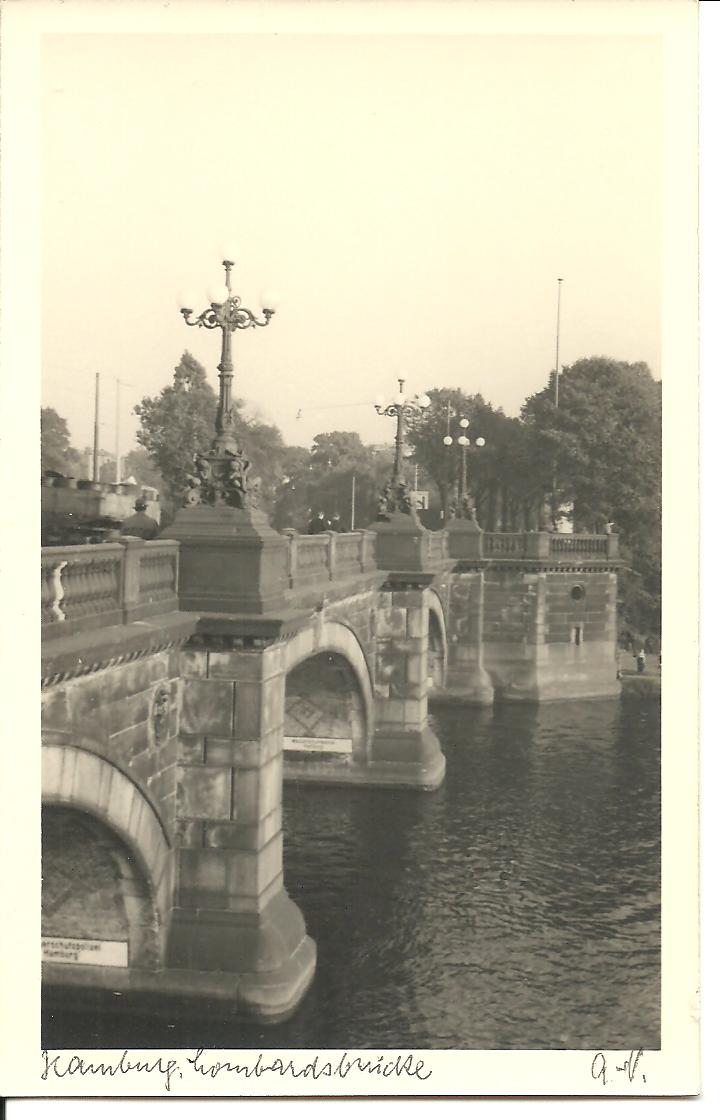 Geographisch passend zum Thema und für zwischendurch: eine Ansicht der Lombardsbrücke, die zusammen mit der Kennedy-Brücke Außen- und Binnenalster voneinander teilt.