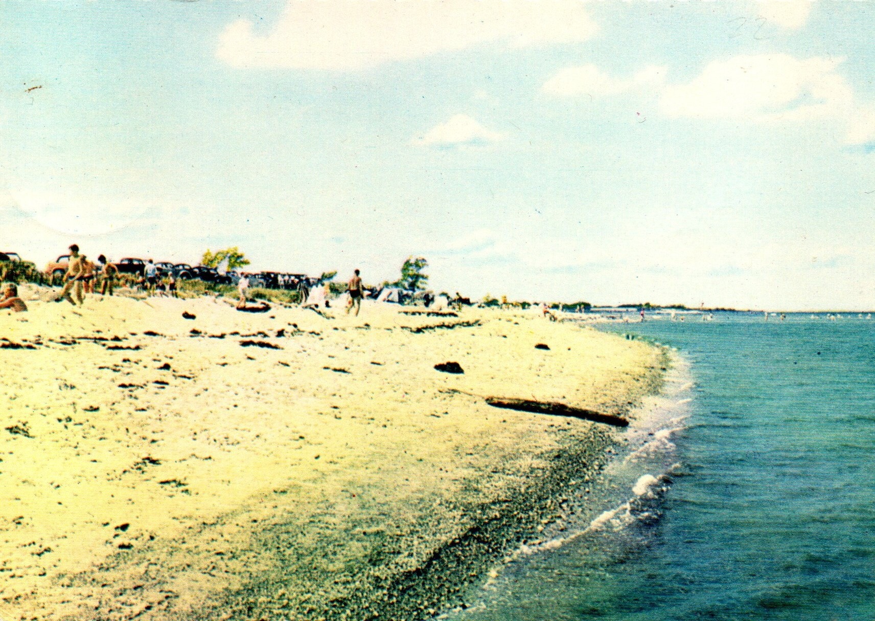 Nun das muss man auch dazuschreiben denn auf dem Bild sieht man nur Wasser, Strand mit Badegästen und Zelten und die dahinter geparkten Autos der Badegäste. Der Ort befindet sich ein ganzes Stück landeinwärts.
