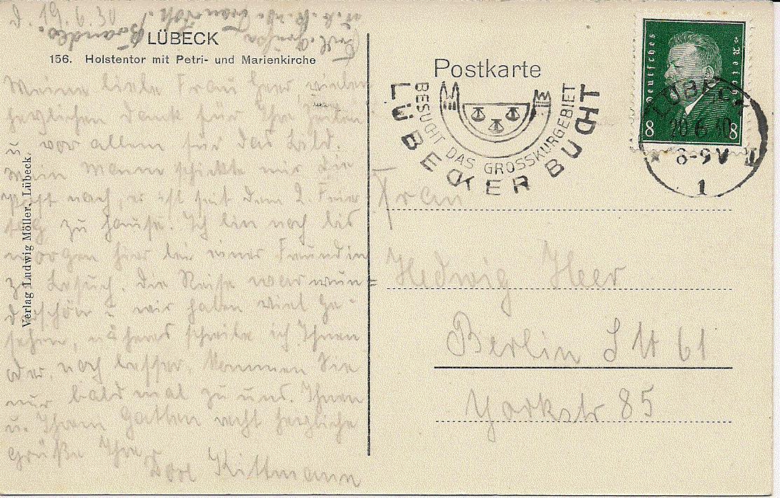 ... Heute also eine AK aus dem Jahr 1930 mit Holstentor und den Türmen der Petri- und Elisabethkirche.