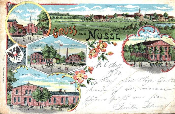 Eine alte Litho mit vielen Ansichten von Nusse: