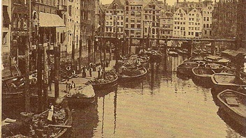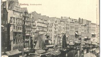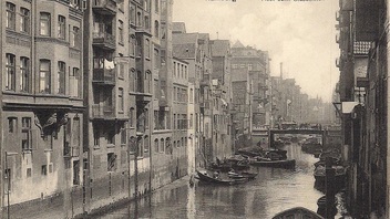 Mal im Ernst, erstens schreibt sich das Fleet nicht Fleth Hier muss ich mich korrigieren: die einheitliche Schreibweise Fleet gilt erst seit 1946, vorher gab es auch noch die Schreibweise Fleth oder Flet., zum zweiten gab es ein ganz schmales Fleet namens Katharinenfleet, das, vom Zollkanal kommend wieder in den Zollkanal mündete (mit Trümmerschutt des 2. Weltkriegs zugeschüttet, heute Strasse). Und zum Dritten zeigen die beiden Karten weder das Katharinen- noch ein Hopfenmarktfleet, sondern das Nikolaifleet mit der Reimersbrücke und dem Turm der Katharinenkirche im Hintergrund.